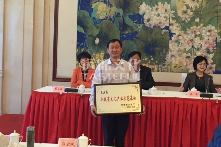 2016年3月8日,我公司常务副总经理张永胜率队赴合肥参加安徽省文化厅主办的2015年“安徽省文化产业示范基地”授牌仪式活动,授牌仪式在隆重热烈的气氛中进行,省厅各级有关领导以及与会企业300多人参与会议,我公司和其它十五个有关单位斩获殊荣,受到省厅有关领导的的亲切接见和高度评价。
